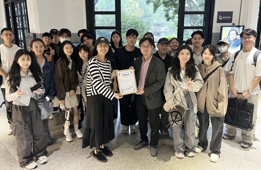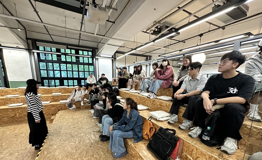 下午行程轉往松菸文創園區,學生們在園區內一處木質階梯式且具現代感的空間中座談,充分展現文創空間的多元可能。這次還特別安排園區專人介紹園區的歷史背景、空間再利用的理念,以及如何透過展演、設計、創業扶植等方式,推動台灣文創產業的發展。學生們不僅聆聽講解,也積極參與討論,對於文創園區如何成為創意孵化器與文化平台有了更深刻的理解。