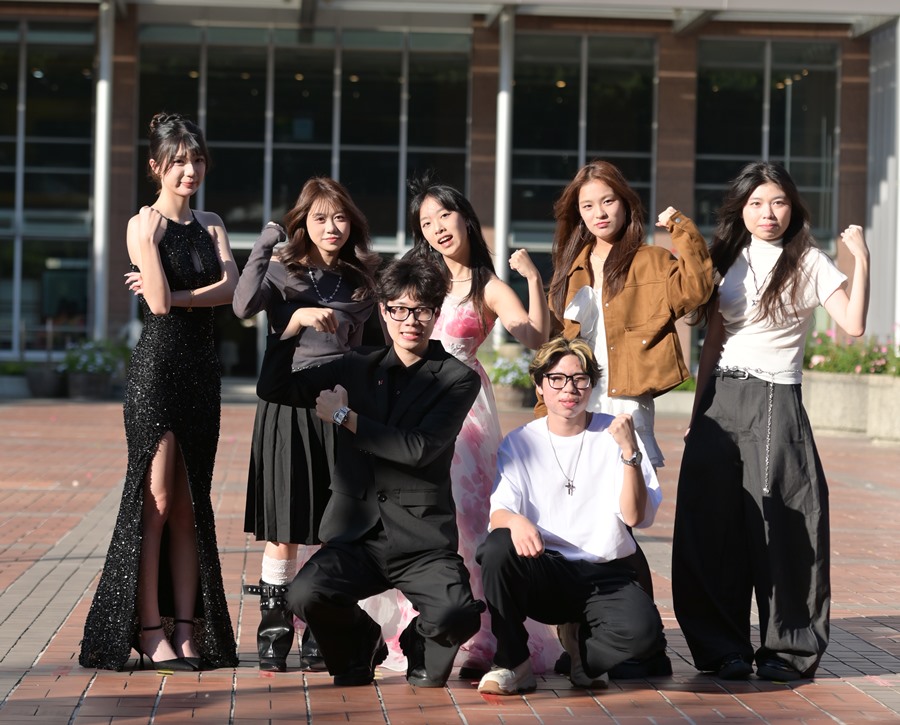 劉郁佐老師特別將攝影棚設置在人言大樓前廣場——那是逢甲最具歷史氣息與人文底蘊的場域。當大二同學踏入光影交織的拍攝點時,被鏡頭定格的,不僅是青春的笑容與姿態,更是他們正式跨過 20 歲門檻的具體見證。
